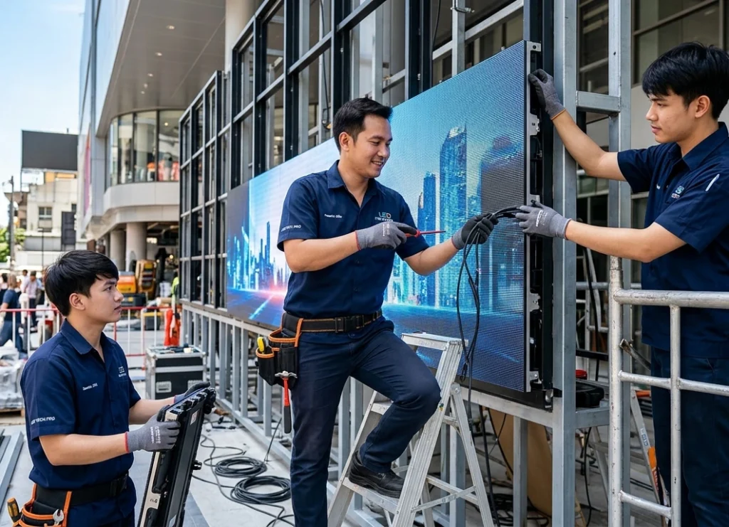 ทีมช่างมืออาชีพของเราพร้อมส่งมอบงานติดตั้งจอ LED Display ทุกรูปแบบ ด้วยความชำนาญ แม่นยำ และใส่ใจในทุกรายละเอียด